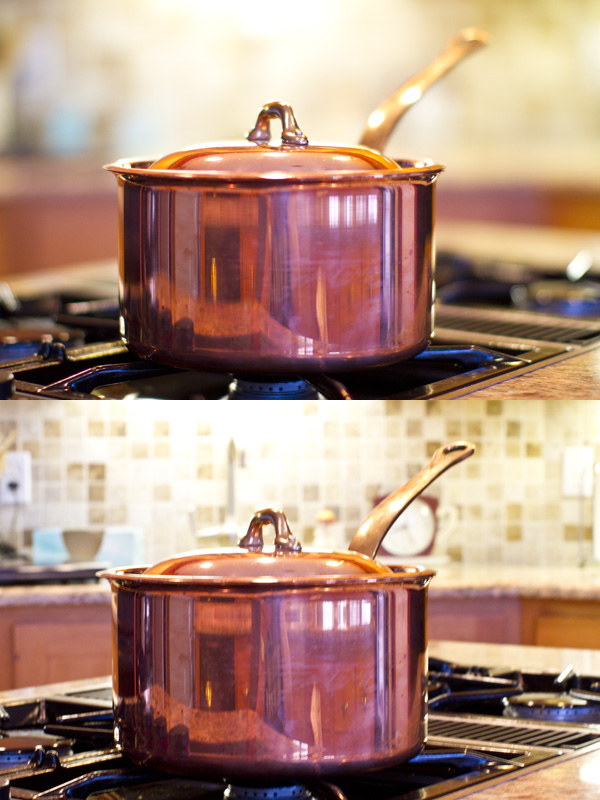 While the aperture controls the amount of light that hits the sensor, it does more than that. It also controls depth of field (DOF). So what is depth of field? It is the area in a photo that is in focus. For example, look at the two photos below. The first photo was shot at f/1.2 with a 50mm lens. Notice that the pot is mostly in focus, but as you move away from it, things quickly go out of focus. (Now, shooting at f/1.2 is pretty extreme, most lenses don’t open that wide but it helps illustrate the point). Now look at the photo below it. It was shot with the same lens, but was shot at f/8. You’ll notice that you can now see the background and also that the handle is now in focus. The depth of field is much wider at f/8 than it was at f/1.2.